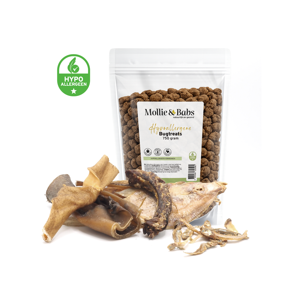 Het gaat er bij Mollie & Babs niet om, om zoveel mogelijk producten in onze webshop te hebben. We vinden het belangrijker om een beperkt assortiment te bieden van hoge kwaliteit én voor elke hond wat wils. Daarom vind je bij ons snacks en beloningen in vele smaken, hebben we een hypoallergeen assortiment voor de gevoelige honden, kun je bij ons terecht voor de kleinere rassen én de grote doorbijters, en hebben we lekkers dat bij elke leeftijd past.